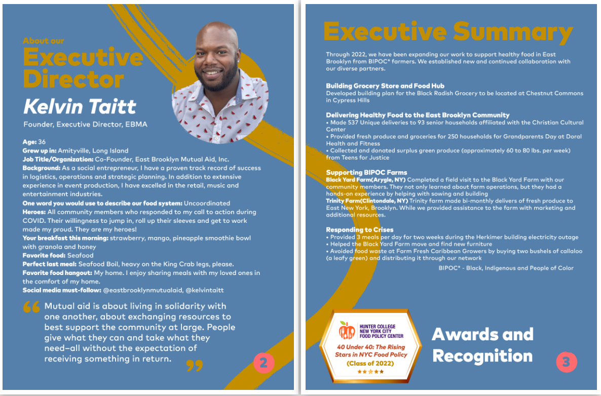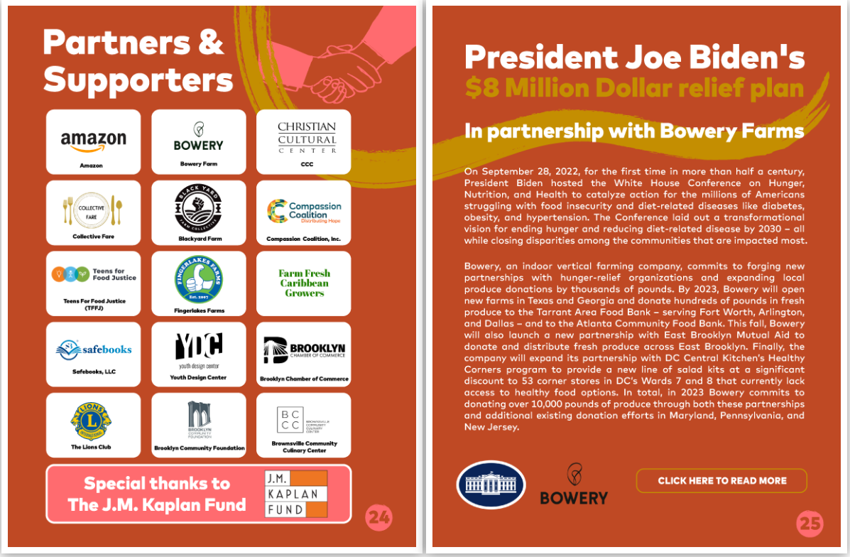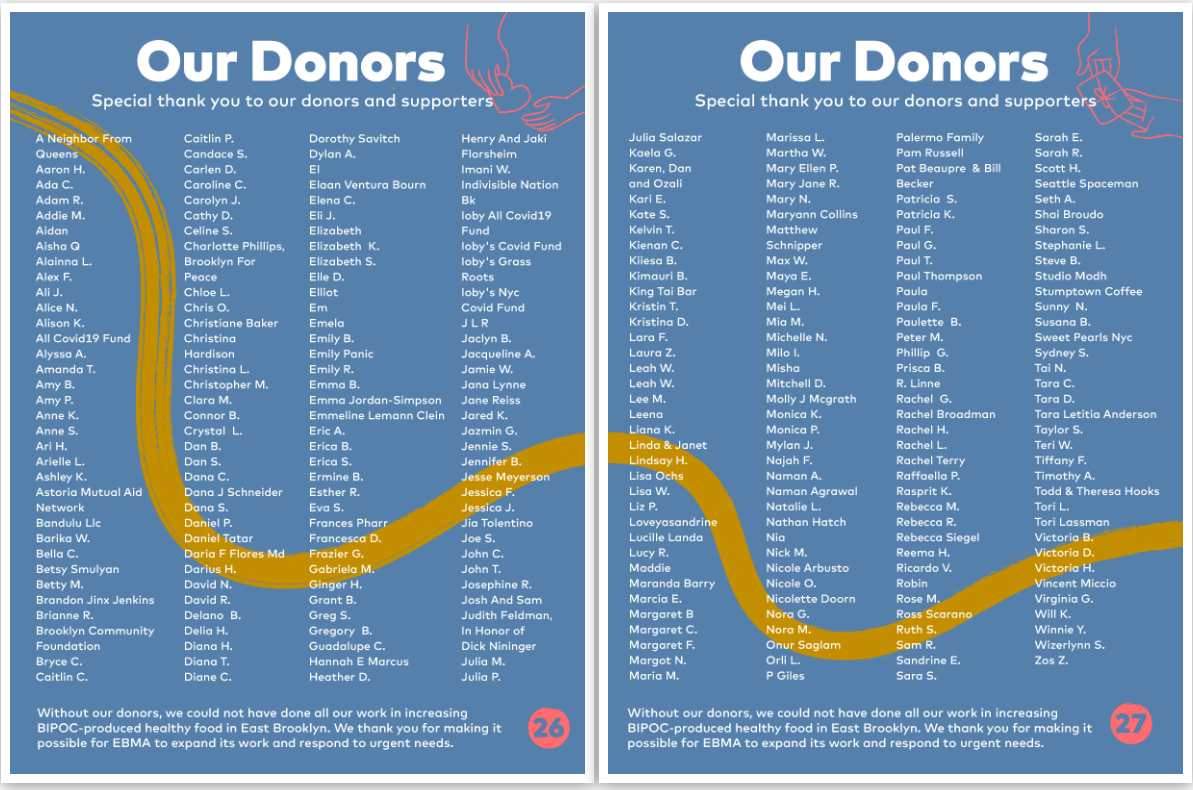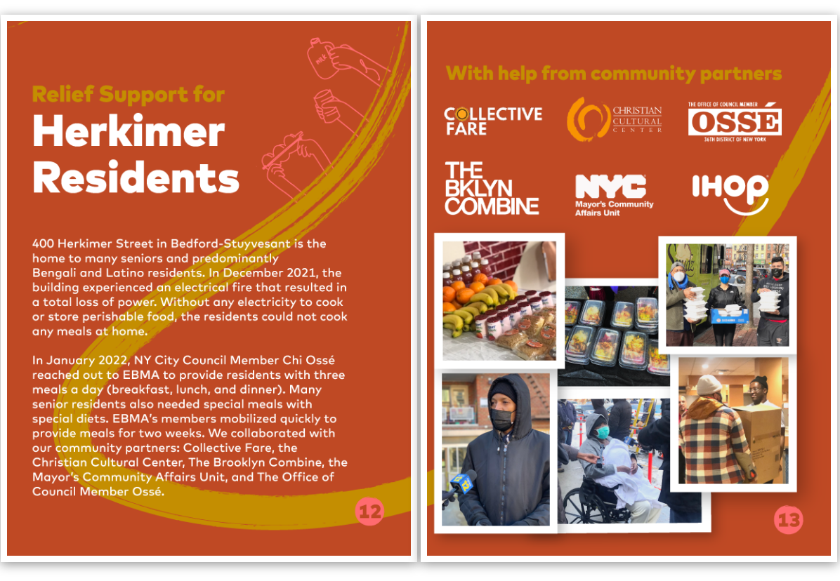 EBMA began its work during COVID and realized the importance of providing affordable healthy food to our community. We donโt just talk about the food desert; we are urgently addressing this need. In the heat of COVID-19, we partnered with community-based organizations (CBOs) like Phoenix Community Garden, Free Fridge Community, Collective Fare, Camp Friendship Food Pantry, Corbin Hill Food Project, and 9 Million Reasonsโโalong with numerous food distribution initiatives such as with elected officials Senator Zellnor Myrie and Council Person Darma Diazโโto provide food for approximately 80,000 Brooklyn residents. As an example, for 16 consecutive weeks we packed and delivered over 1,000 food boxes per day on behalf of the Corbin Hill Food Project through funding from the Get Food NYC Program with Brooklyn Packers. In just two short years, EBMA has used community organizing and advocacy as key tools for building and funding community-powered food networks.